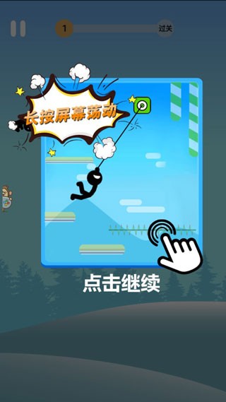 其中在绳索跳跃环节,需要通过长按屏幕来完成拉拽动作,松开屏幕就能触发跳跃,操作方式十分简单,也很容易理解。