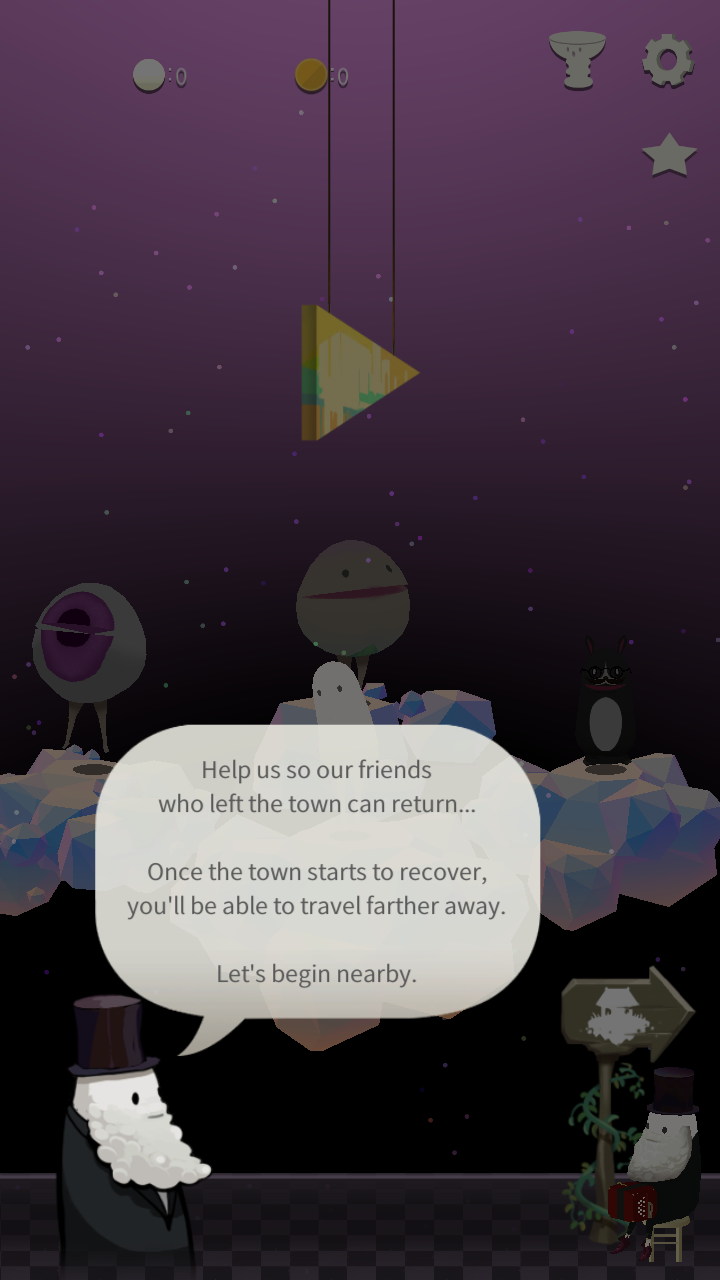这是一个破旧的村庄。你需要修复它,找回离开村庄到达世界各地的竹子,并把它们带回村庄。要小心沿途的各种陷阱。还有丰富的关卡等着你。