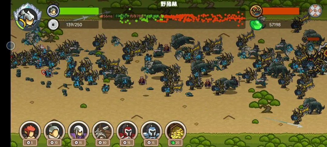 这游戏只有三种攻击能稳定输出,近战、AOE、锁定攻击,像弓箭手这种远程,很难打中人。所以目前最好的输出就是投石车。