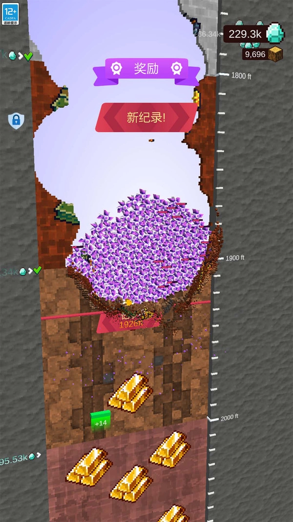 2、合成钻头:玩家可以收集钻石来购买或合成更高级的钻头,提升挖矿效率。