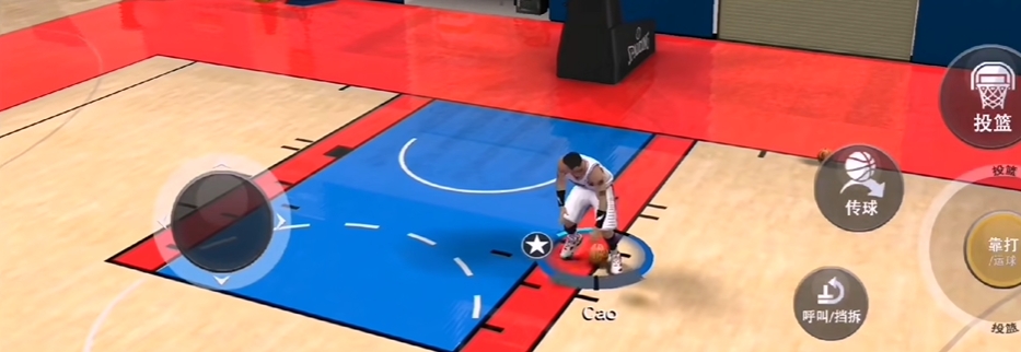 运球键从持球手方向向左上或者向右上滑动半圈。