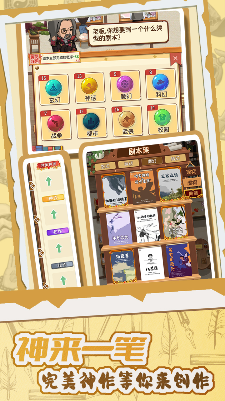 除了经营店铺,还要每天进行创作,研究出更有意思的剧本。