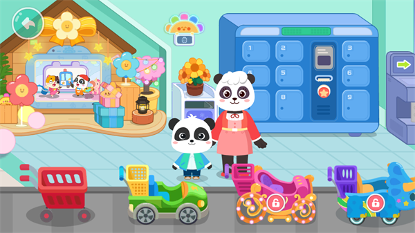 【琳琅商品】:哇,这超市可真大呀!货架上摆满了各种各样的商品,水果、蔬菜、玩具、零食……应有尽有!模拟真实的超市购物场景,能让宝宝体验到逛超市买东西的乐趣。