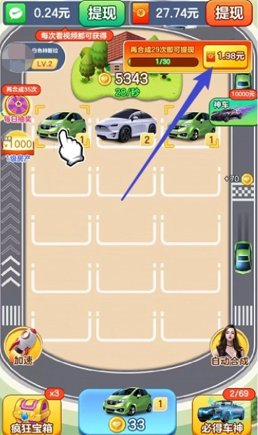 是真的,尽管收益不算高,但确实能赚到钱。新人一进入游戏就能领红包,只要把同型号的小汽车合成,合成之后就能拿到红包奖励。