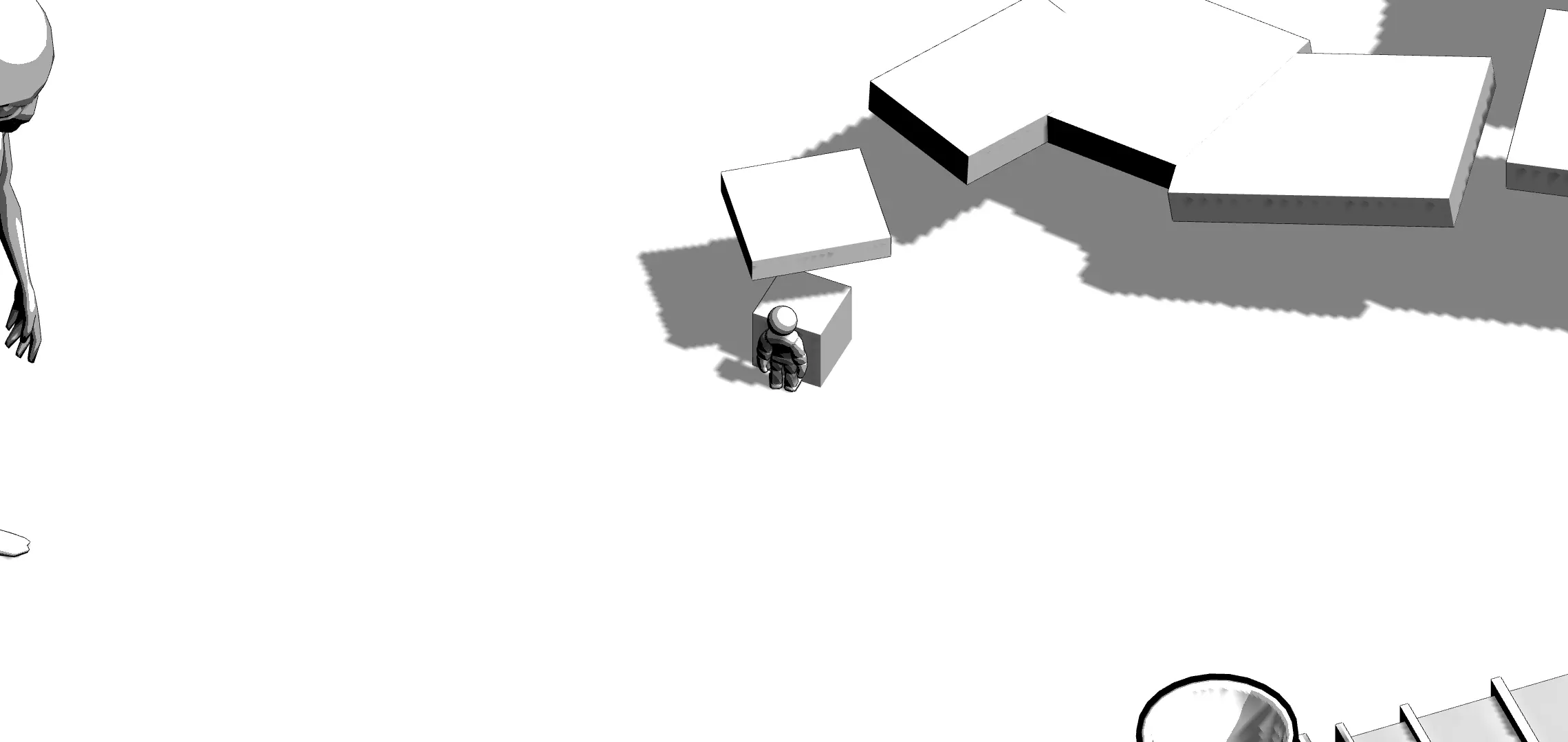 然后就会进入图里的这个区域,空中会掉落一个方块,把那个方块推到这块板子前当作垫脚石,跳上去之后就能开始跑酷了。