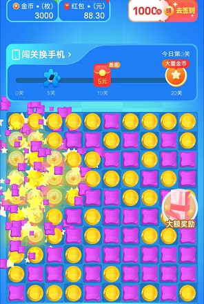 3、完成了一定关卡还可以领取额外的福利,比如第五关、第十关,都可以得到一定金币。