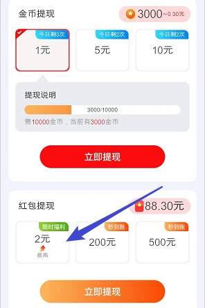 可以提现的,新人可以先在红包提现界面提现0.2,后面几天也能提现,然后每天签到,凑齐1万金币也能直接提现1。