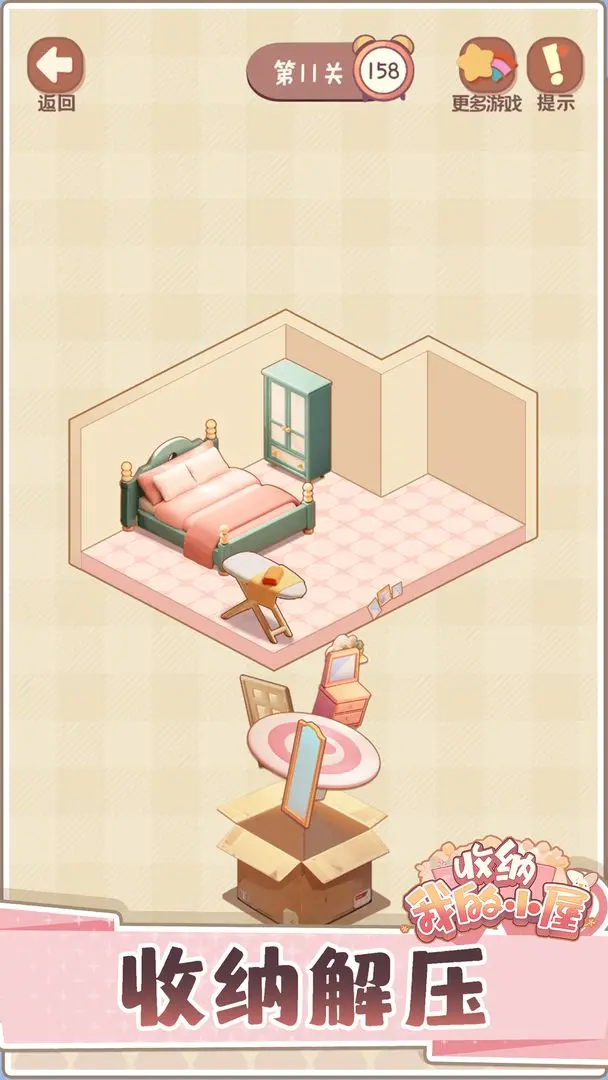 2.时间限制下的速度挑战:每个关卡都有时间限制,玩家需要在规定时间内完成收纳任务,挑战自己的整理速度。