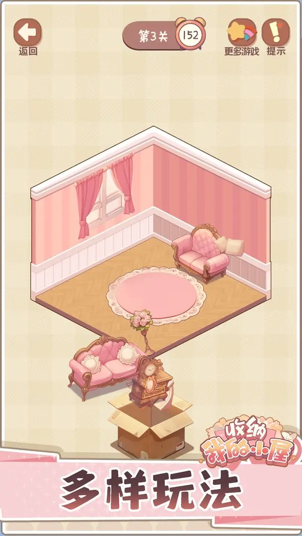 2.玩家在游戏中不仅可以享受收拾和装饰的乐趣,还能在卡通冒险元素的融入下,体验成为收纳大师的成就感。每个关卡都有不同的内容和挑战,提供了多样化的游戏体验。