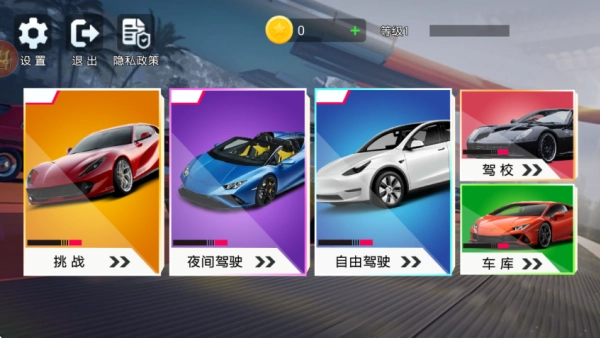 1. 如下图所示,这里提供了驾校、挑战、夜间驾驶以及自由驾驶等多种模式玩法可供体验。