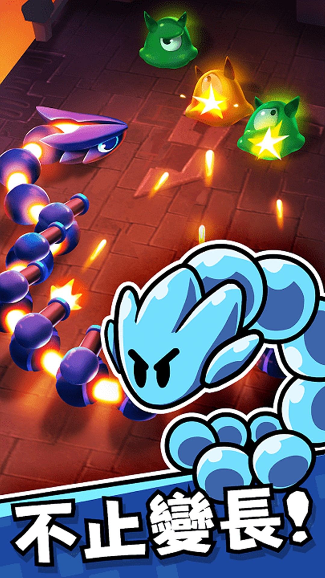 1、动作射击元素:这款游戏融合了动作与射击的玩法机制,玩家在游戏过程中需要灵活操控小蛇来开展战斗行为。