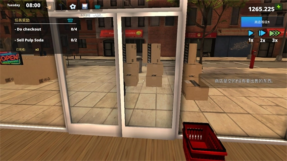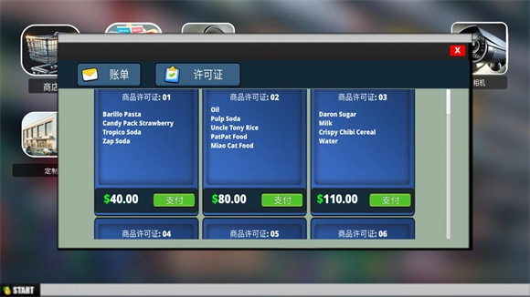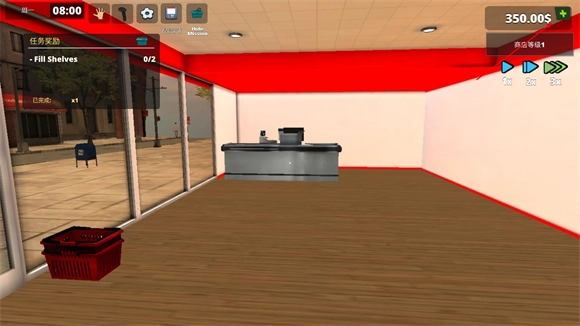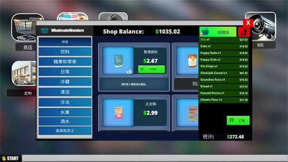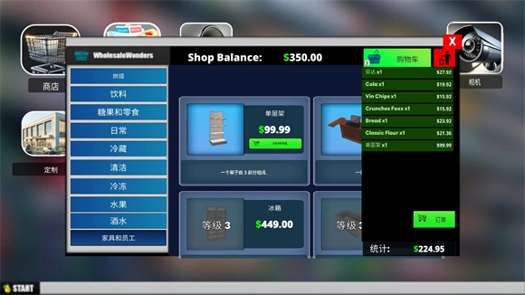 2、有大量货物需要玩家自行购入与补充,超市内的所有货柜和收银柜都得由你选择摆放位置。