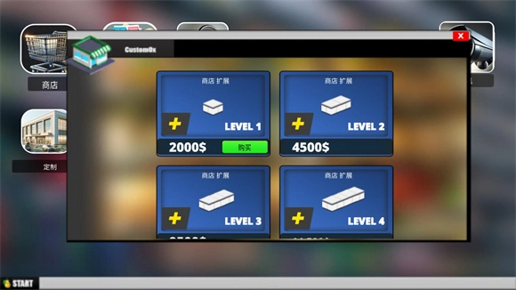 5、点击“定制”选项可对自己的超市进行扩建操作,每次扩建均需满足相应等级要求方可进行。