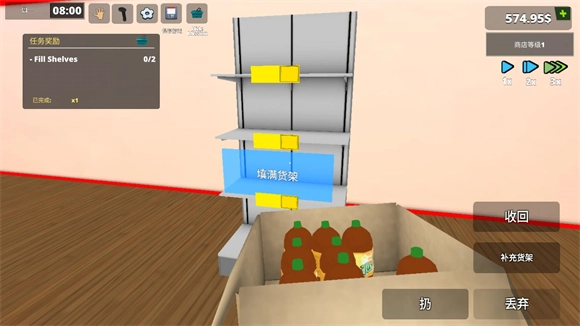 4、完成购买后,货物会被送到超市门口,玩家需要自行将其拾取并放入超市内。
