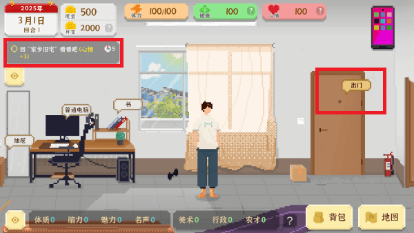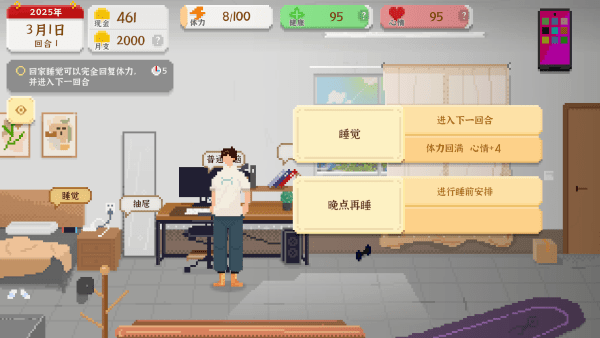 10、要是没什么事可做了,就回家睡觉,这样能直接回满体力,好开启下一回合。