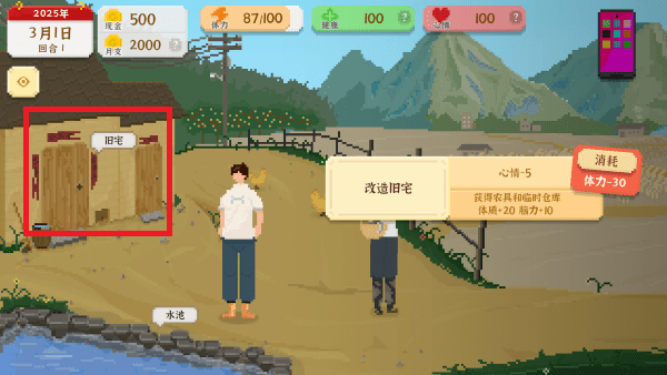 6、同时我们还需要改造自己的旧宅,需要消耗体力。
