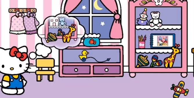 1、讲睡前故事,看动画片并帮助孩子上床睡觉。在我们的3、4岁儿童游戏中的Hello Kitty世界!