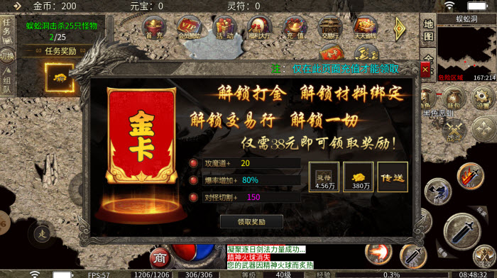 2、微变版本的传奇,只要愿意投入时间就能提升实力,在线玩家数量众多,每天都有新玩家加入到游戏里。