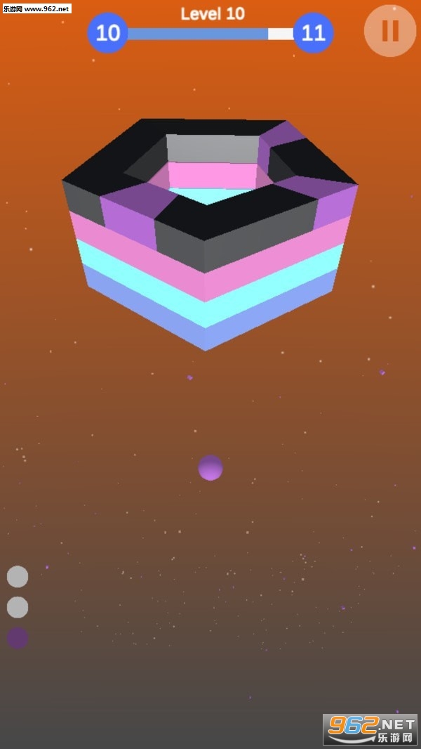 游戏里玩家得操控蓝色小球撞击正确的色块,一直到触底为止。这是个考验反应能力的游戏,稍微一不留神就会结束!