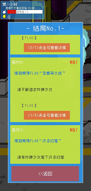 这就是解锁真结局需要达成的关键Flag清单啦。不需要把所有Flag都收集齐,只要满足指定数量就行。等条件都满足后,会出现一个特殊选项“清除障碍”,直接选它就能达成最终目标。建议大家经常看看结局提示,这样能清楚知道自己的进度。祝各位都能成功攻略炸弹少女,抱得美人归~