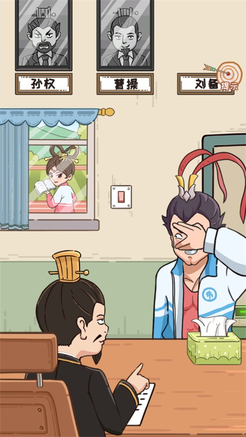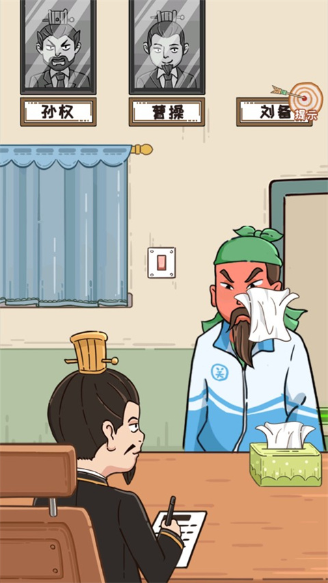 把刘禅手里的画拖到顶部的挂画空位,长按画像进行拖动,让名字和对应的画像角色匹配就能通关了。