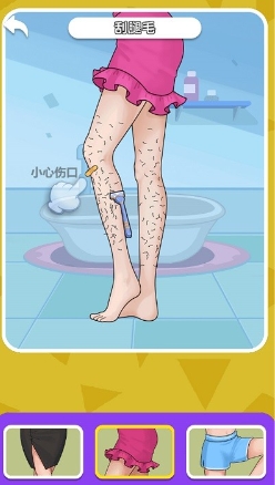 可以按照自己的想法来做选择,完成任务之后就能解锁对应的合适道具。这里能用的工具种类特别丰富,玩法也很简单,很容易就上手了。只要坚持玩下去,就会觉得特别开心——看着一条长长的腿就这么被刮得干干净净,那种治愈的感觉特别明显,心里头也跟着特别兴奋。不过有些腿上可能还带着点小红点或者疤痕,所以我们刮腿毛的时候可得多留意,一定要确保一根毛都不剩下才行。