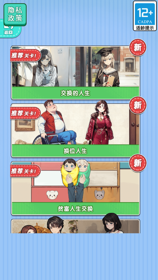 《富家女被抱错》是一款全新推出的解谜冒险游戏,核心玩法聚焦于玩家运用智慧环环相扣的谜题,推动剧情朝着正确方向发展。游戏以别具一格的交互式解谜为核心机制,玩家只需轻松点击操作,就能体验逆转命运的乐趣。游戏巧妙融合了趣味剧情与精心设计的关卡,为玩家带来全新的游戏感受。在游戏过程中,玩家既能沉浸于引人入胜的故事世界,又能锻炼自身的逻辑思维与解谜能力。若你喜爱推理解谜类游戏,《富家女被抱错》定能为你带来十分愉悦的游戏体验。