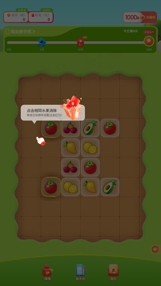 1、消除水果方块就能获得红包,满0.3就可以直接提现到账。