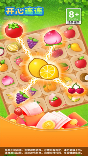 开心连连,一个水果连线消除的游戏,玩家将消除相同的水果来完成挑战,在开心连连里有很多的红包可以领取,丰富的水果方块等你去消除,各种各样的挑战任务会给你不一样的乐趣,更多好玩的模式会给你新的乐趣,不断消除更多的方块来领取属于你的奖励吧。