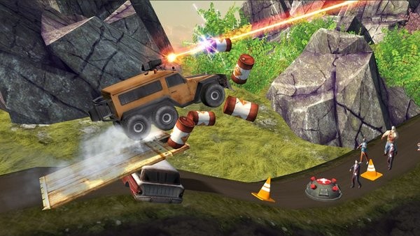仅仅能防御可不够,要想战胜僵尸,你得给汽车配件升升级——装上一把枪,去射击那些爆炸物和僵尸;装上尖刺框架,把所有挡路的东西都推倒;再装上助推器,让它能飞越一连串的障碍和陷阱。