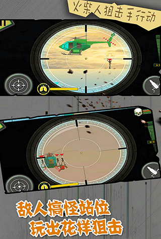 2、全新的火柴人角色互动玩法,玩家将化身狙击手,借助不同类型的枪械武器开启战斗。