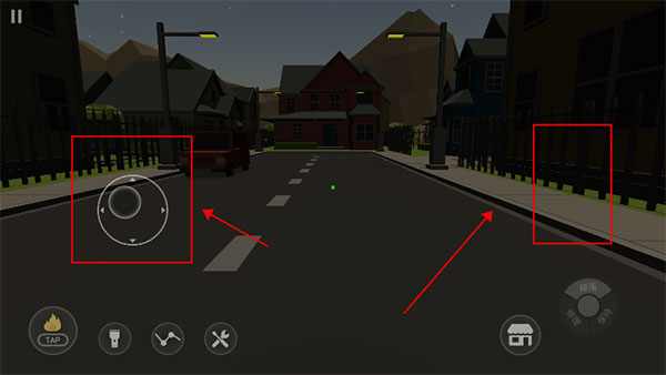 8、游戏里滑动左侧区域可操控角色移动,滑动右侧区域能调节视角的上下左右方向。