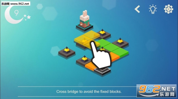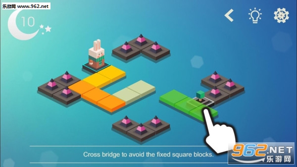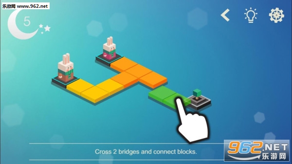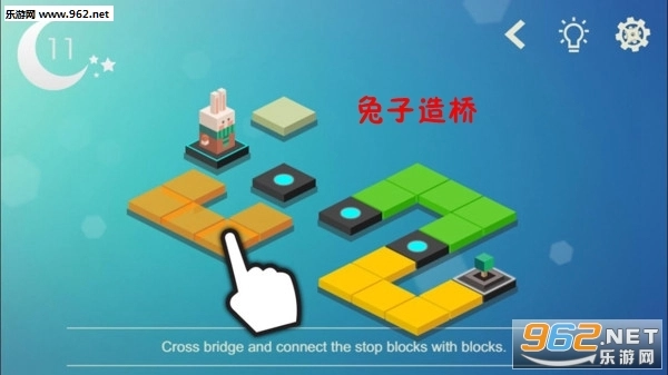 游戏的操作十分简单,只需点击眼前的方块就能完成任务目标,任务内容也很容易,就是搭建桥梁,让小兔子能够顺利渡过河流。