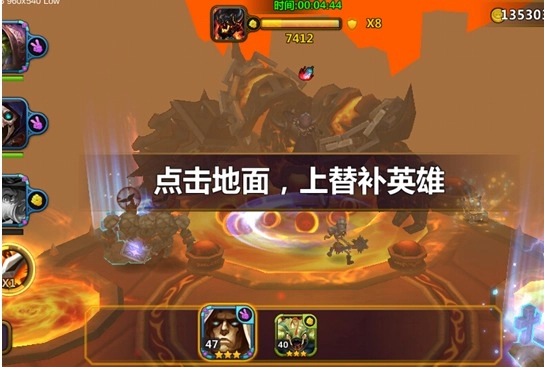 挑战BOSS时可挑选6名英雄参与,但同一时间仅能有3名英雄投入战斗,其余英雄则处于待命状态,需待有英雄阵亡后才能登场。