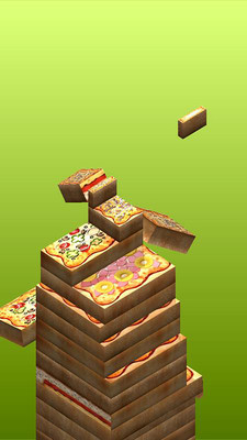 这是一款颇具特色的小清新趣味闯关游戏,你的目标是实现无限堆叠,这极其考验手速与判断力,需将一个个披萨完美堆叠起来,一旦出现没有任何重叠的情况就会失败。