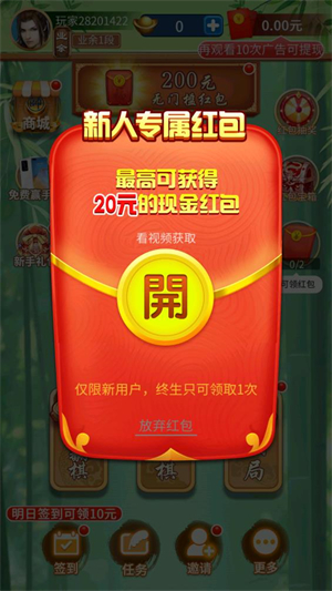 1、当玩家进入游戏后会获得一个新手红包,每完成指定场数的对局就能获得红包。