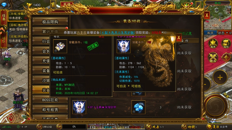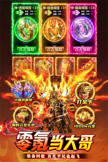 爆率高到离谱,哪怕是小怪都有机会爆出永恒级装备,而且支持随时随地一键回收,就算是平民玩家也能在玛法大陆畅快征战!