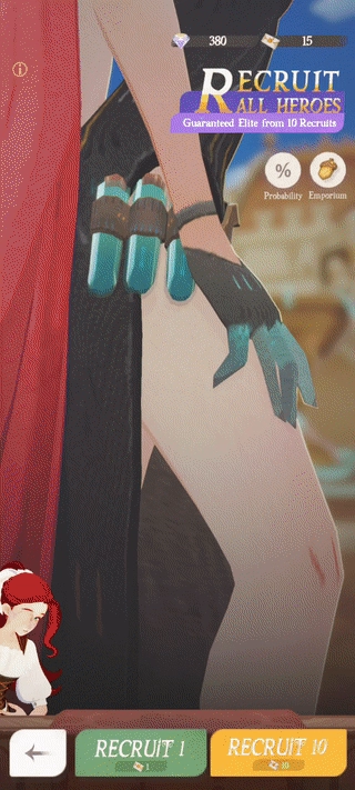 抽卡 演出的用心之处也能感受到:魔女开场秀出腿部线条时,左下角的看板娘会害羞地用手捂住眼睛。