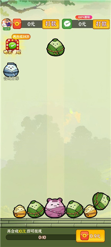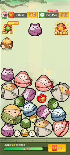 3、只要让两个相同的粽子碰撞到一起,就能直接合成新的粽子。这样不仅能解锁新的粽子种类,还能获得不少红包奖励。