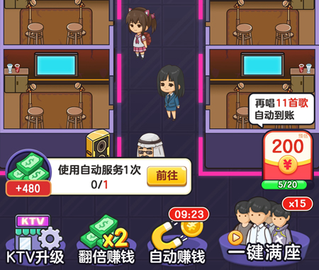 2、升级与扩张:通过提升歌厅等级,解锁新的装修风格、设备以及包厢类型,借助顾客的好评来积累良好口碑,从而吸引更多客人前来消费。