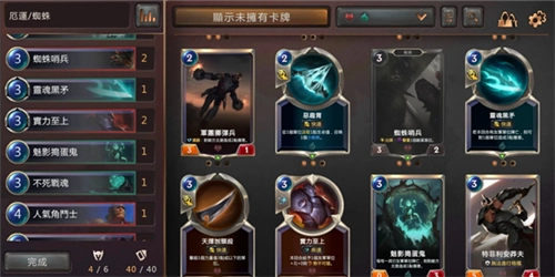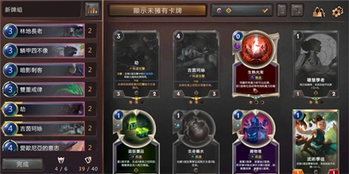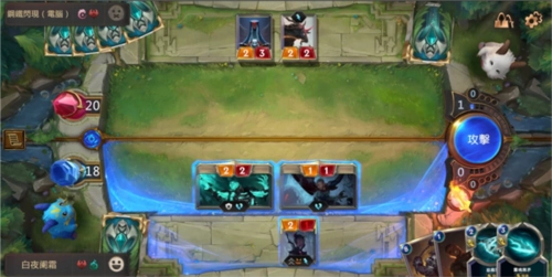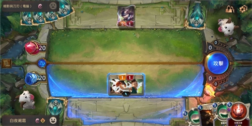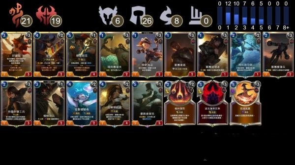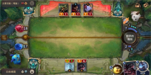 开局一定要把高魔力消耗的卡牌替换掉,否则会严重拖累战斗节奏,这是因为无论暗影岛还是诺克萨斯都没有主动抽取卡牌的能力。前期上伊莉丝和小蜘蛛格挡敌人,拖的越久我方胜率越大,后期用毁灭风暴摧毁残血主堡即可。