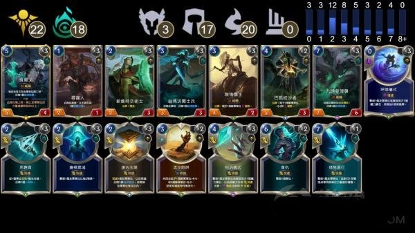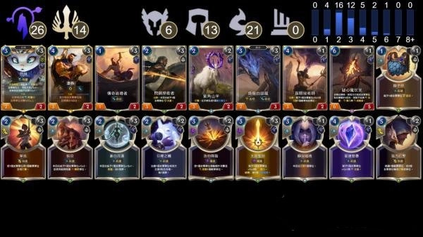 该套卡组的缺点是攻击力缺乏,这可能与艾欧尼亚的背景设定相关,比较依赖脆皮劫的输出。不过因祸得福,双重戒律等法术牌可以大幅增强卡牌属性,在前期通常能碾压敌方卡牌。
