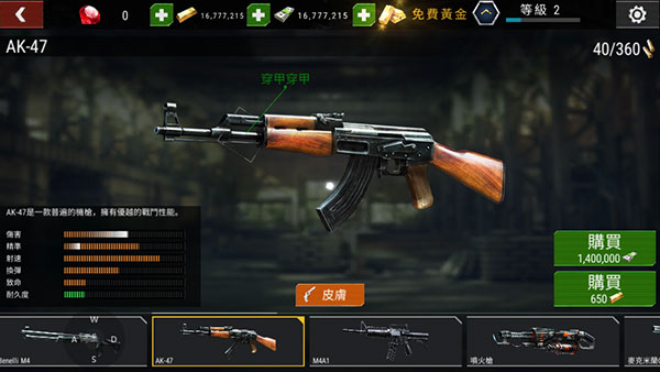1,丰富的武器体系支持深度定制,涵盖多种现代军火,持续使用还能解锁特殊涂装与属性加成
