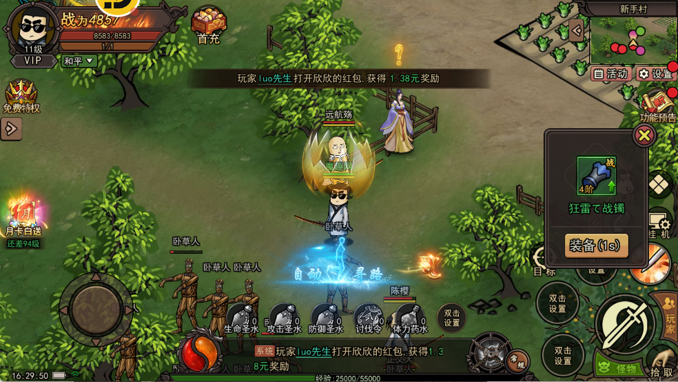 这款游戏对普通玩家十分友好:游戏里顶级装备的掉落概率很高,即使是不氪金的散人玩家也能没什么压力地成长为厉害的大佬,而且还有丰厚的福利赠送,助力大家快速提升等级,轻松秒杀小怪。