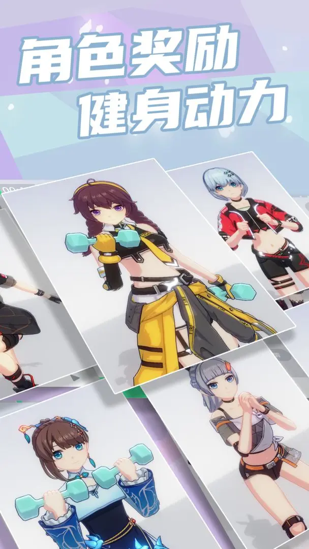 3. 游戏运用3D实时卡牌渲染技术,塑造出一系列美少女教练形象,并呈现出精美的健身动作。