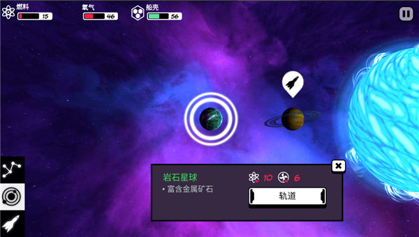 前期要是没能快速获取带护盾的/基础护甲值高的遗弃飞船,或是没掌握护盾发生器科技,燃料采集会比较紧张,但还没到没有燃料时那种窘迫的地步。主要的损失出现在靠近大型气体行星和降落在类地行星这两个环节。