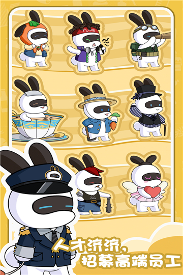 3.招募各种兔子员工,每个员工都有自己的特长和职业,合理分配工作以提高效率。