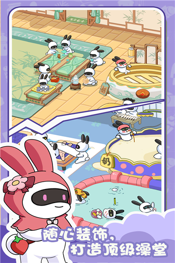 兔克的餐厅是一款以轻松休闲为核心的模拟经营游戏,玩家将带领一群不务正业的兔子,将一个破旧的澡堂逐渐改造成豪华高端的餐厅。兔克的餐厅游戏中,玩家需要通过加工、改造和经营,体验从无到有的创业过程,同时还要应对各种随机事件,确保顾客满意度,提升餐厅的知名度和盈利能力。