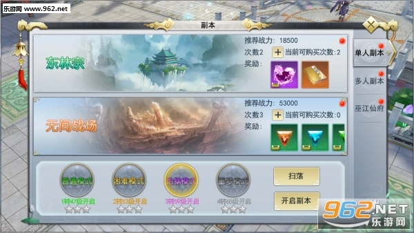 无间战场设有普通、困难、地狱和噩梦四种难度,玩家需在1转47级、2转53级、3转59级及4转阶段分别解锁对应难度的挑战资格。不同难度秘境中的魔物强度存在显著差异。若挑战失败,不仅无法获取任何奖励,还会消耗进入秘境的次数。因此,根据自身实力选择适宜的难度进行挑战,是我们在修行道路上必须铭记的重要原则。