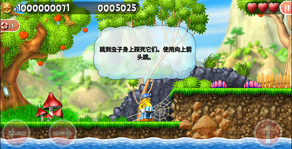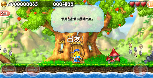 通过左右箭头控制杰克的移动,右侧按钮负责跳跃,双击可进行二段跳。